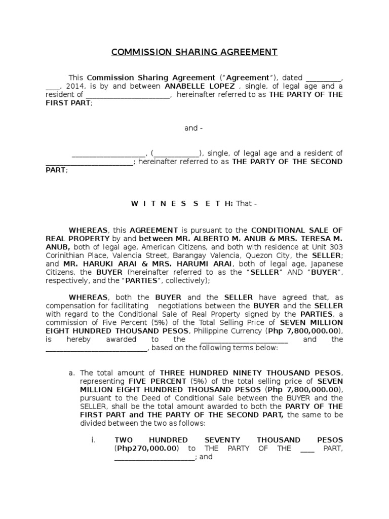 36 Free Commission Agreements Sales Real Estate Contractor